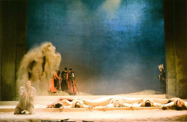 نمایشی که با گروهی پرشمار از بازیگران سرشناسی چون پرویز پورحسینی، احمد آقالو، رضا کیانیان، مهرانه مهین ترابی، تانیا جوهری، فرهاد اصلانی، حسن معجونی، سیامک صفری، کاظم هژیرآزاد، لعیا زنگنه و … روی صحنه رفت.